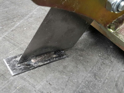 Oftentimes, multiple layers of flooring have been installed on top of eachother. Removing these old laysers is difficult because they have to be cut into strips before removing them. This is nearly impossible with a carpet knive. The BULL-Cutter is an upright blade that can be installed on the BULL strpping machine. The BULL-Cutter makes cutting multiple layers of flooring fast and easy.