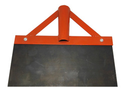 With socket for wooden handle, diameter 36-40 mm. Blade height 150 mm, blade thickness 1 mm.