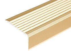 Stair nosing, very much grooved 42 x 23 mm ending in "0", made of hard aluminium. Very robust fi nish. For later mounting on the fl oor covering. This profi le is very suitable for stairs that are put a great strain on. Length 360 cm.