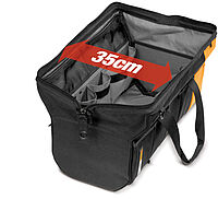 Die ToughBuilt® 20" Massive Mouth™-Tasche verändert die Art und Weise, wie Profis Werkzeuge und Zubehör transportieren. Die zum Patent angemeldete Öffnung ist breiter als bei allen anderen Taschen auf dem Markt und sorgt für eine hervorragende Zugänglichkeit.