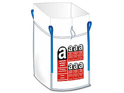 PP-Gewebe-Containersack mit "Asbest"-Aufdruck. Mit praktischer Einfüllschürze zum Zubinden. Beschichtetes, UV-stabilisiertes Polypropylen-Gewebe.